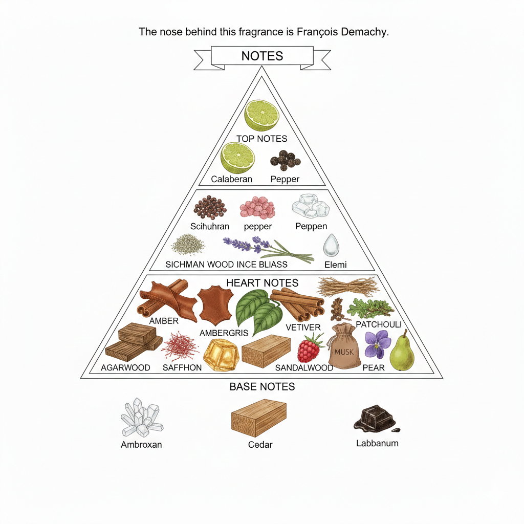 A bold and sophisticated fragrance by François Demachy, opening with zesty Calabrian bergamot and spicy pepper. Its complex heart blends lavender, pink and Sichuan pepper, vetiver, patchouli, geranium, and elemi, while a warm, woody base of ambroxan, cedar, and labdanum leaves a long-lasting, refined, and memorable trail.